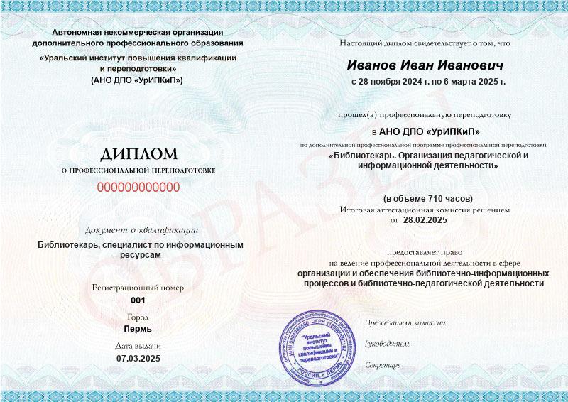 Курс обучения Библиотекарь. Организация педагогической и информационной деятельности (710ч)