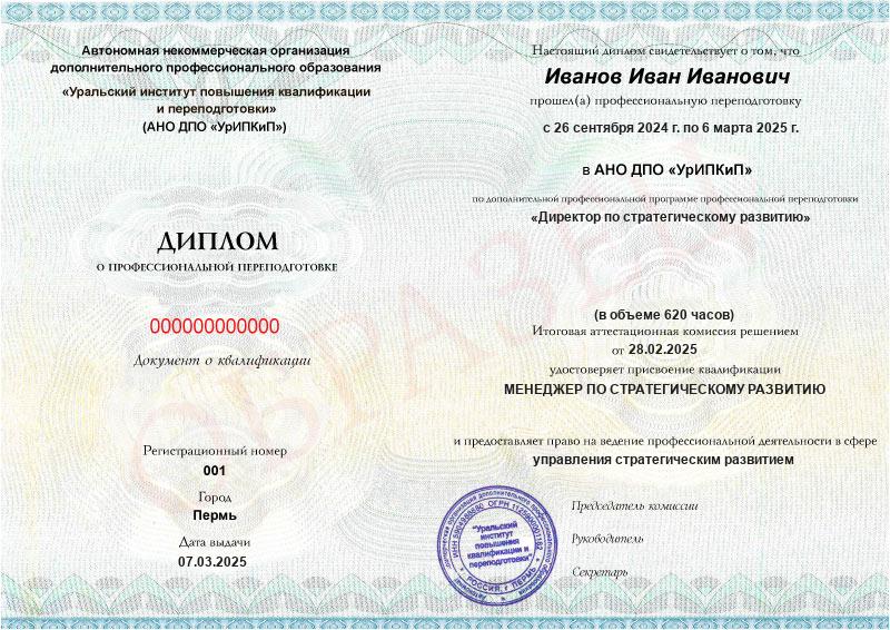 Да, дипломы и удостоверения оформляются в соответствии с действующим законодательством РФ. Документы печатаются на специальных бланках, заверяются печатью АНО ДПО «УрИПКиП».