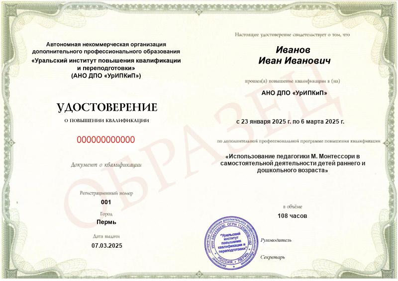 • Повышали квалификацию в АНО ДПО «УрИПКиП» – вам будет выдано удостоверение.