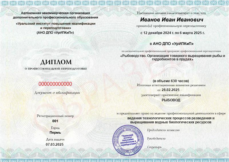 Профессиональная переподготовка по рыболовству позволит вам заниматься организацией разведения рыб в рыбоводческих хозяйствах. Если вы собственник такого бизнеса или планируете начать своё дело в этой сфере, полученные знания помогут вам организовать эффективное рыбопроизводство и быстро окупить вложенные инвестиции.