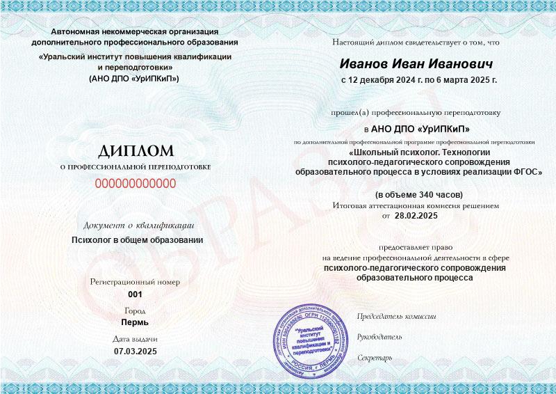 Да, дипломы и удостоверения оформляются в соответствии с действующим законодательством РФ. Документы печатаются на специальных бланках, заверяются печатью АНО ДПО «УрИПКиП».