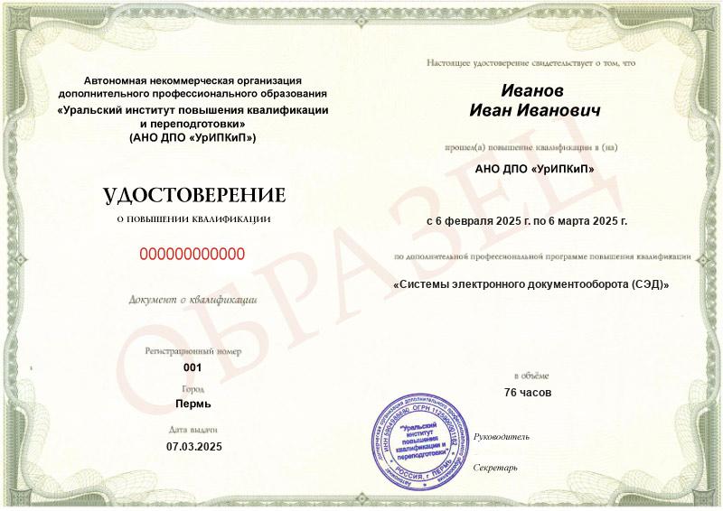 - Повышали квалификацию в АНО ДПО «УрИПКиП» – вам будет выдано удостоверение.