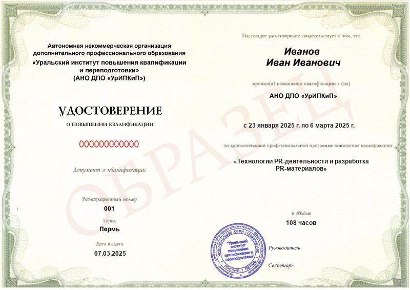Курс обучения Технологии PR-деятельности и разработка PR-материалов (108ч)