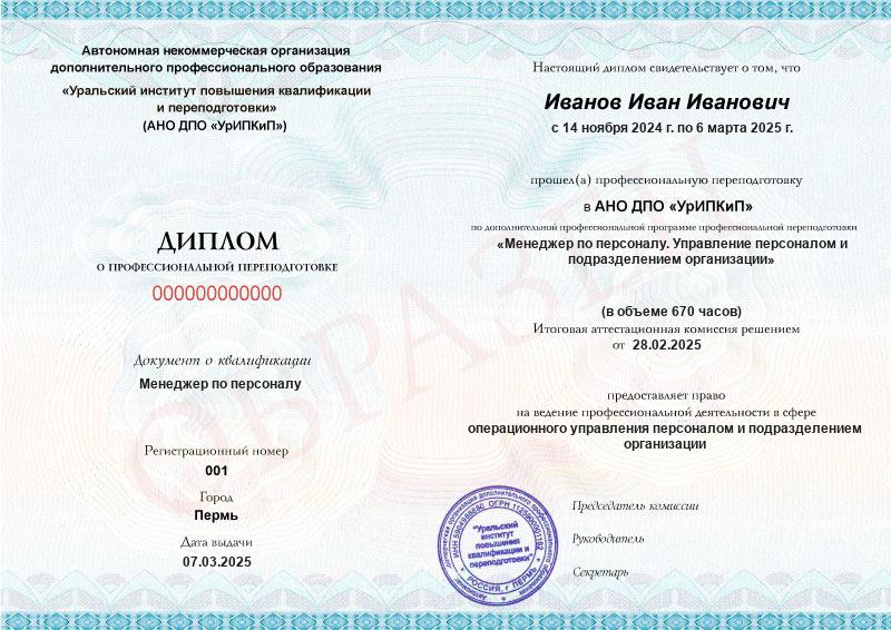 Курс обучения Менеджер по персоналу. Управление персоналом и подразделением организации (670ч)